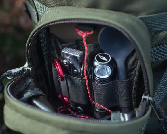 Savotta Zipped GP pouch 3×3 on keskikokoinen, erittäin käytännöllinen säilytyspussi, jonka tilavuus on noin 1,8 litraa. Se sopii erinomaisesti erilaisten tarvikkeiden järjestämiseen, jotka haluat pitää helposti saatavilla luonnossa liikkuessasi.