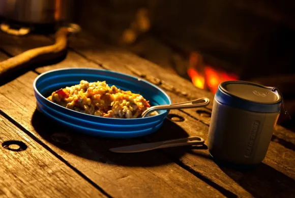 Taitettava lautanen matkalle tai vaellukselle. Lautasen pohjaa voi käyttää leikkuualustana!