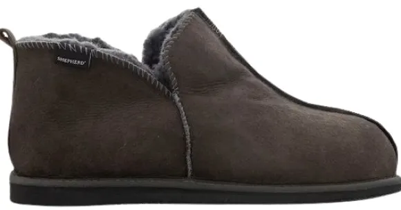 Shepherd Anton on pehmeä miesten lampaannahkainen tohveli, joka on nilkkakorkuinen ja varustettu sivuilla olevilla pienillä halkioilla, mikä tekee niistä helppokäyttöiset – helppo pukea ja riisua. Tohveleissa on koristeelliset ulkopuoliset saumat, tekstiilireunukset pohjan ympärillä ja mokkanahkainen lenkki takana. Ulkopohja on valmistettu EVA-materiaalista.
