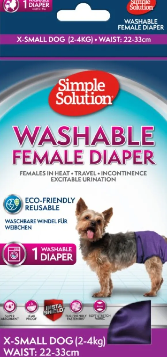 Hallitse mahdolliset ongelmat inkontinenssista kärsivien lemmikkien kanssa. Simple Solutionin pestävät vaipat nartuille ovat mukavia ja turvallisia, ja niissä on pehmeä, joustava materiaali sekä pitkäkestoinen vuotosuoja.