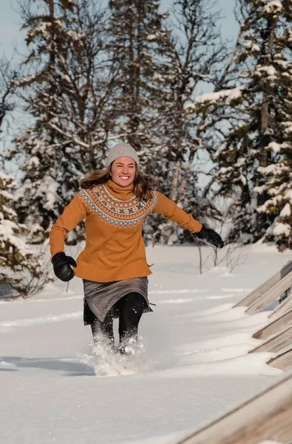 Neulottu paita, jossa on korkea, ihanasti lämmittävä kaulus. SKHOOP on saanut inspiraationsa perinteikkäistä pohjoismaisista kuvioista.
