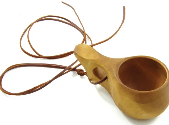 Kuksa on valmistettu perinteiseen pohjoismaiseen tapaan aidosta koivusta. Kahvassa on yksi sormireikä ja punottu nahkainen pitkä hihna. Kuksan tilavuus on noin 0,9 dl.