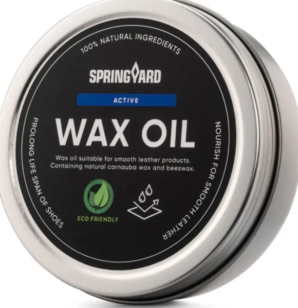 Springyardin Shoe Wax on luonnollisista aineksista valmistettu vahaöljy, joka sopii sileästä nahasta valmistetuille kengille. Öljy pehmentää nahkaa ja ehkäisee sen kuivumista.