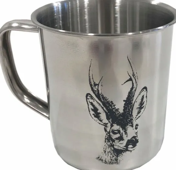 Stabilothermin kauriin kuvalla koristeltu, ruostumattomasta teräksestä valmistettu retkimuki. Kestävän ja kevyen mukin voi pestä tiskikoneessa.