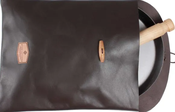 Stabilothermin lehmännahkainen säilytyskotelo paistinpannuille. Kotelo suojaa muita varusteitasi likaantumiselta. Kotelo sopii Stabilothermin Jägar-paistinpannulle, jonka halkaisija on 21 cm. Kotelo on kromiton eikä sisällä atsovärejä.