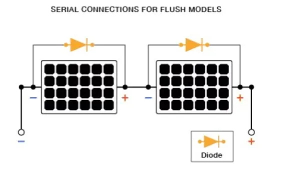Pysäytysdiodi Sunbeam flush -aurinkopaneeleille, pakollinen käytettäväksi paneelien sarjakytkennässä.