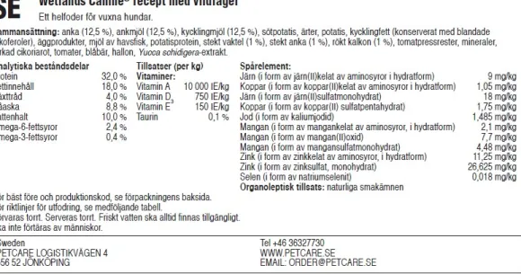 Viljaton ruoka aikuisille koirille. Wetlands sisältää ankkaa ja kanaa sekä tarjoaa erinomaisen makuelämyksen. Ruoka sisältää myös bataattia ja herneitä, jotka tarjoavat paljon helposti sulavaa energiaa aktiiviselle koirallesi. Ruokaa täydennetään hedelmillä ja vihanneksilla. Tämä hyvin muotoiltu koostumus sisältää luonnollisia antioksidantteja, jotka suojaavat nelijalkaisen ystäväsi kehoa arjen vaurioilta sekä tukevat koirasi immuunijärjestelmää ja yleistä terveyttä.