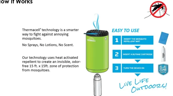 Torjuu hyttysten lisäksi tehokkaasti myös polttiaiset, mäkärät ja hirvikärpäset. Toimii kaikilla Thermacell-kaasupatruunoilla ja -torjuntamatoilla. Katso, miten ja missä käytät Thermacelliä turvallisesti, ja tutustu ennen käyttöä.