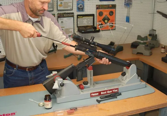 Tipton Universal Bore Guide suojaa kivääriäsi puikon aiheuttamilta naarmuilta sekä liuotin- ja öljyvalumilta piippua puhdistettaessa. Puhdistus ilman Bore Guidea saattaa vahingoittaa aseesi piippua.