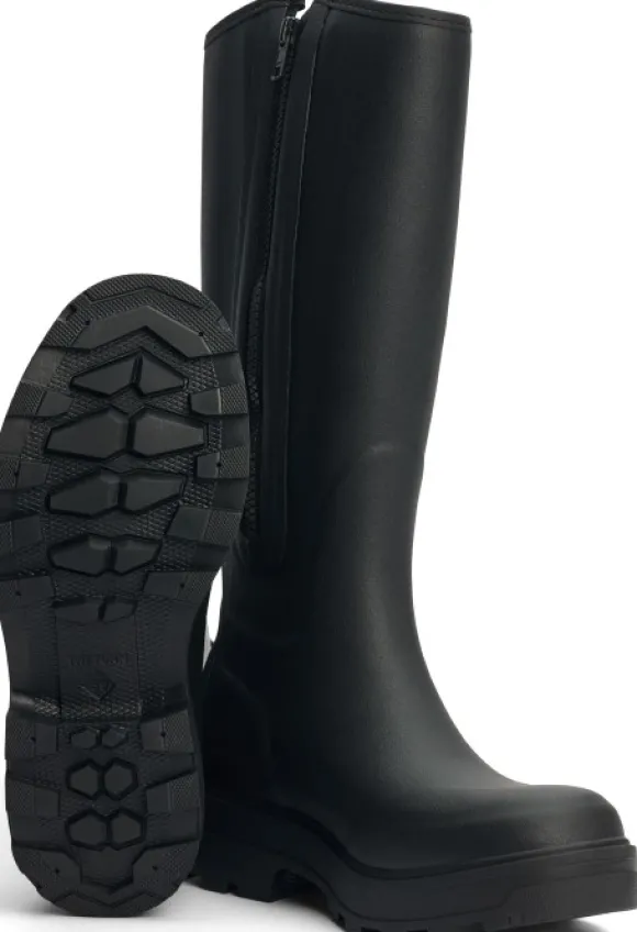 Naisten tukeva, korkea ja erinomaisella kiertojäykkyydellä varustettu kumisaapas. Tukeva saapas on erityisesti suunniteltu käytettäväksi haastavassa maastossa ja korkeassa heinikossa. Pehmeä yläreuna takaa käyttömukavuuden koko päivän ajaksi. Ohut ja nopeasti kuivuva vuori on kierrätettyä polyesteriä. Sisäpuolella oleva vetoketju helpottaa saappaan pukemista ja riisumista.