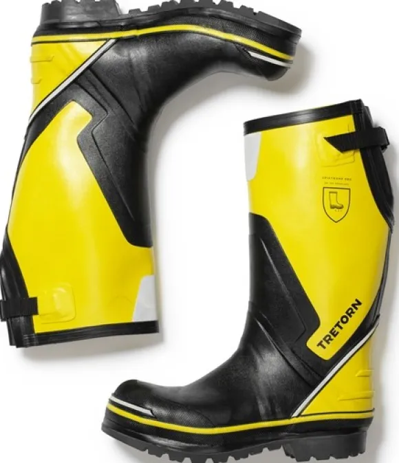 Tretorn Spiktramp Pro -saappaiden erityinen rakenne helpottaa niiden pukemista ja riisumista. Nopeasti kuivuva vuori ja säädettävä varsi. Ulkopohja on valmistettu öljynkestävästä nitriilikumista joka tarjoaa hyvän pidon liukkailla alustoilla. Hyvin tilaa varpaille, heijastimet varressa ja teräskärki.