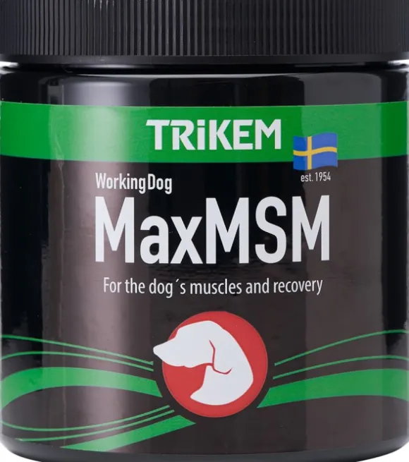 Trikem Working Dog Max MSM+ on koirien lisäravinne, joka nostaa maitohappokynnystä ja nopeuttaa koiran palautumista rasituksesta. Sopii erityisesti rasituksessa oleville harrastus- tai työkoirille sekä iäkkäille ja jäykkyydestä kärsiville koirille. Edistää palautumista sekä rustokudoksen, nivelten, jänteiden, sidekudoksen, luuston ja lihasten hyvinvointia. Metyylisulfoonimeteeni eli MSM on orgaaninen rikkipohjainen aine, joka edistää kuona-aineiden poistumista ja soluseinämien läpi tapahtuvaa hapetusta. Valmistusmaa Ruotsi. Pakkauskoko 450 g.