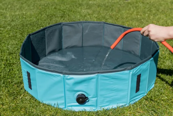 Tätä uima-allasta koirasi rakastaa kuumina kesäpäivinä. Se on valmistettu muovista / MDF:stä, jossa on tukevat sivut, jotka kestävät koiran leikin. Altaassa on liukastumista estävä lattia, mikä tarkoittaa, että koira on aina turvassa uima-altaassa. Allas on helppo koota ja purkaa, tyhjennät altaan helposti vedestä tyhjennysventtiilillä.