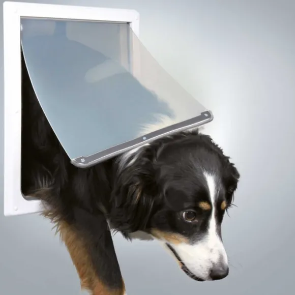 Muovinen koiranovi suurille koirille (M-XL). Lukittava.