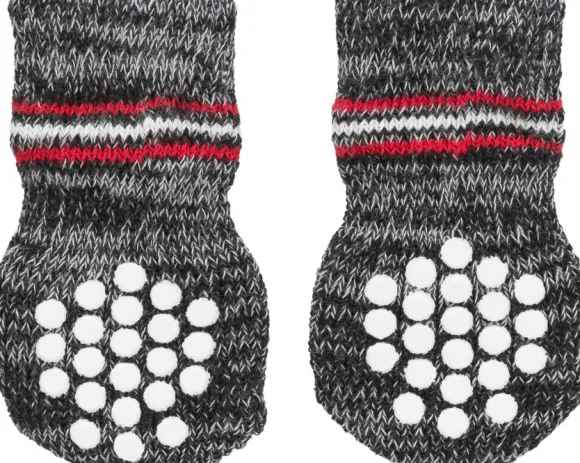 Trixien puuvillaisissa koirantossuissa on liukuesteillä varustetut pohjat, jotka antavat hyvän pidon liukkailla pinnoilla. Tossut soveltuvat hyvin selkä- ja nivelongelmista kärsiville koirille, ja niiden käyttö myös edistää loukkaantuneiden tassujen paranemista. Lisäksi tossut suojaavat lattioita ja huonekaluja naarmuuntumiselta. Koko: XS-S.