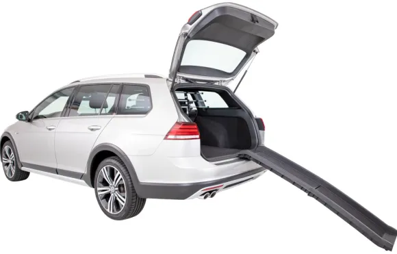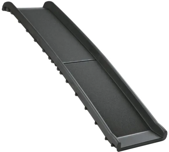 Muovinen kokoontaitettava ramppi, jossa anti-slip -pinnoite ja turvakorotukset reunoilla. Rampin käyttäminen on suositeltavaa iäkkäimmille lemmikeille, se suojaa lemmikin niveliä ja helpottaa nivelongelmaisen koiran autoon nousua. Ramppi on helppo pitää puhtaana.