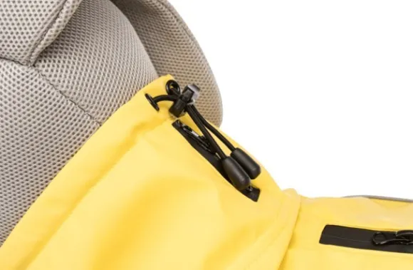 Trixien sadetakki Vimy on tuulen- ja vedenpitävä erittäin korkealla, kiristysnyörillä säädettävällä kauluksella. Kaksi vedenpitävää vetoketjua mahdollistavat hihnan kiinnittämisen kaulapantaan tai valjaisiin.
