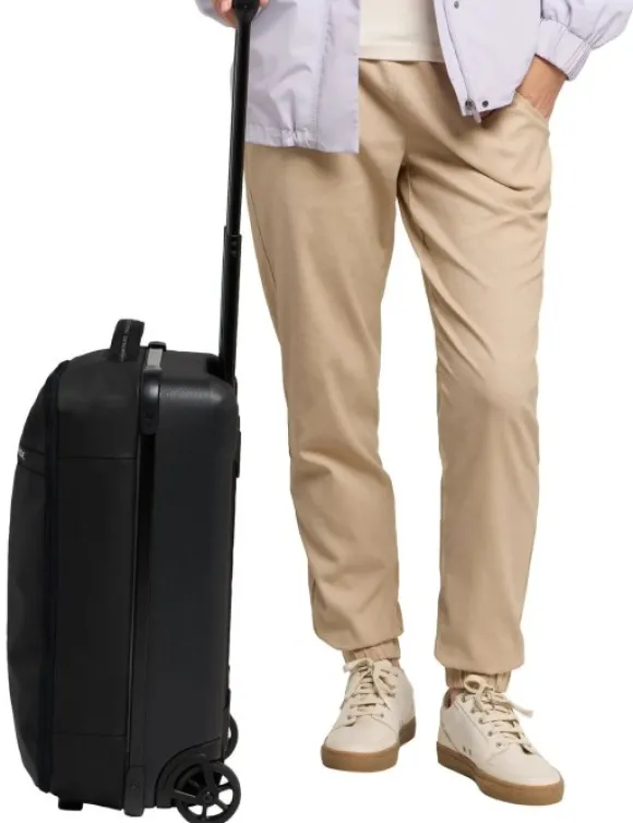 Kestävien kumipyörien ja ulosvedettävän teleskooppikahvan ansiosta laukkua on helppo kuljettaa myös pidemmillä matkoilla.