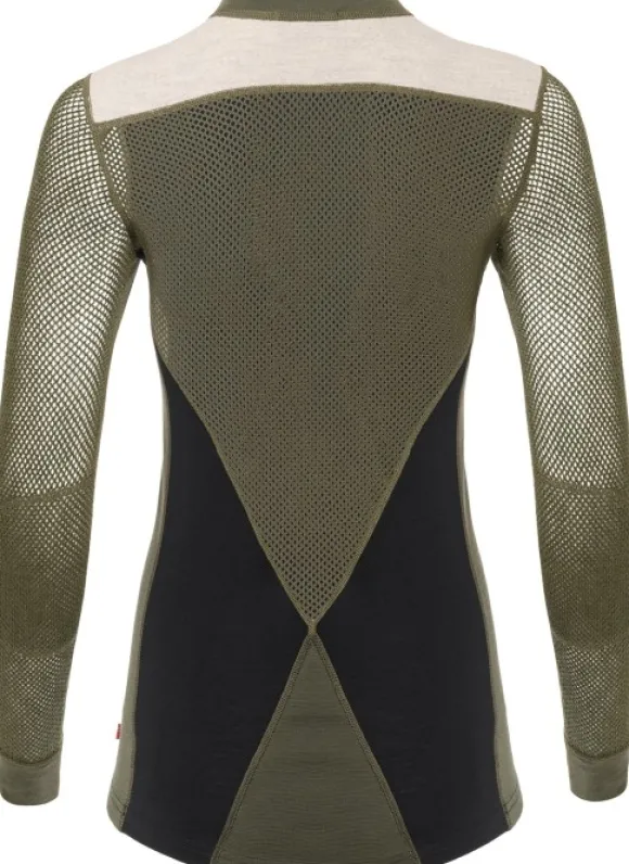 Naisten kerrastopaita, jossa on pyöreä pääntie. Vahvikkeet kyynärpäissä ja olkapäillä, joka tuo lisämukavuutta reppua kantaessa. Rinnassa WarmWool -materiaalia, joka on lämmintä 100 % merinovillaa.