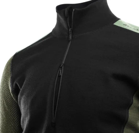 WoolNet Hybrid Mockneck on villaverkkopaita, jossa on korkea kaulus ja pitkät hihat. Kyynärvahvikkeet ja joustinneulottu materiaali hartiaseudulla lisäävät mukavuutta reppua kannettaessa, jotta olkahihnat eivät tunnu epämukavilta. Puseron kauluksessa oleva vetoketju tehostaa ilmanvaihtoa tarvittaessa. Rinnan kohdalla 100 % merinovillaista WarmWool-materiaalia.