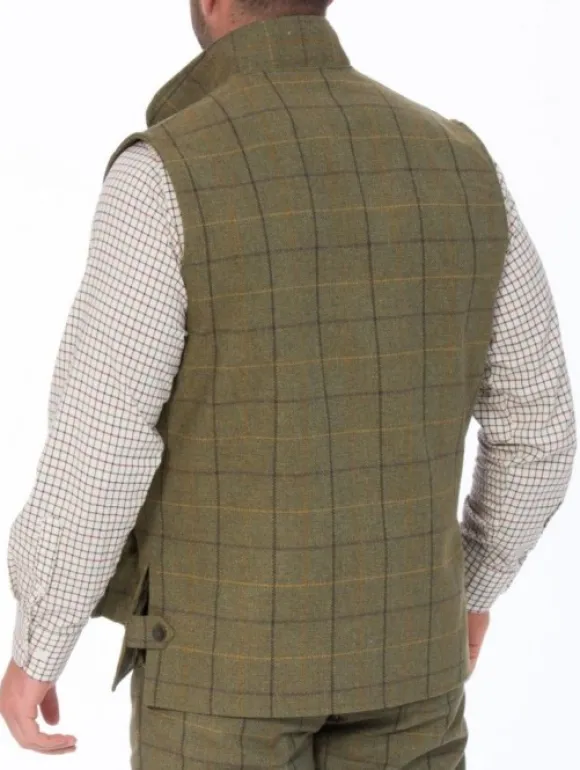 Suosittu Rutland Tweed, värinä Dark Moss yhdistää tiheään kudotun villan sammalenvihreällä taustalla kulta-, ruskea- ja mustaruudullisen kuvion, klassisen ”lookin” luomiseksi. Liivissä on tuulenpitävän molskikaulus, kaksi isoa ammustaskua, kaksisuuntainen vetoketju ja etutaskut.