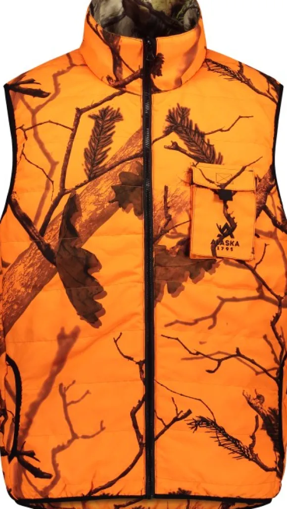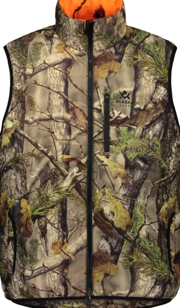 Alaskan käännettävässä, topatussa Tundra-metsästysliivissä on lämmin ja kevyt SuperLoft-vuori, kaksi etutaskua, vetoketjullinen rintatasku sekä radiotasku. Liivin väreinä ovat kirkas Blaze 3D -oranssi sekä maastouttava BlindMax HD -camoväri.