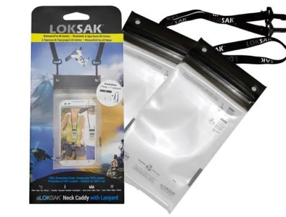 Vedenpitävä puhelinkotelo jonka voi ripustaa kaulaan.