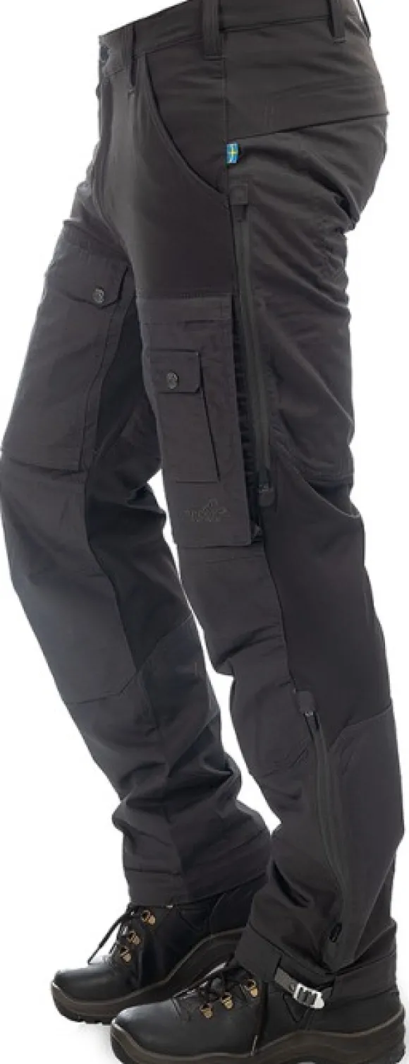 Housuissa on tuuletusvetoketjut sivuilla ja polvitaskut polvisuojia varten. Käytännöllinen vetoketju lahkeissa helpottaa korkeavartisten kenkien pukemista ja riisumista sekä mahdollistaa lisätuuletuksen. Housuissa on säädettävät lahkeensuut, jotka on mahdollista kiinnittää kengännauhoihin.
