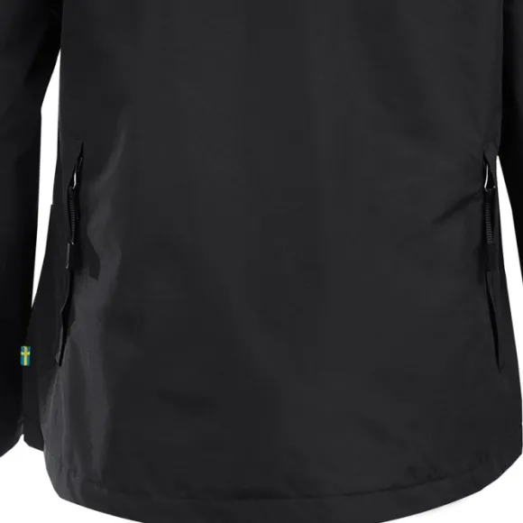 Hihojen alla on vedenpitävät tuuletusvetoketjut, joiden sisäpuolella on verkkokangas. Irrotettava huppu on säädettävissä parhaan istuvuuden saavuttamiseksi sateessa. Takkia voi säätää myös vyötäröltä ja hihansuista. Näkyvyyttä pimeässä lisää heijastava logo rinnassa ja hupussa.