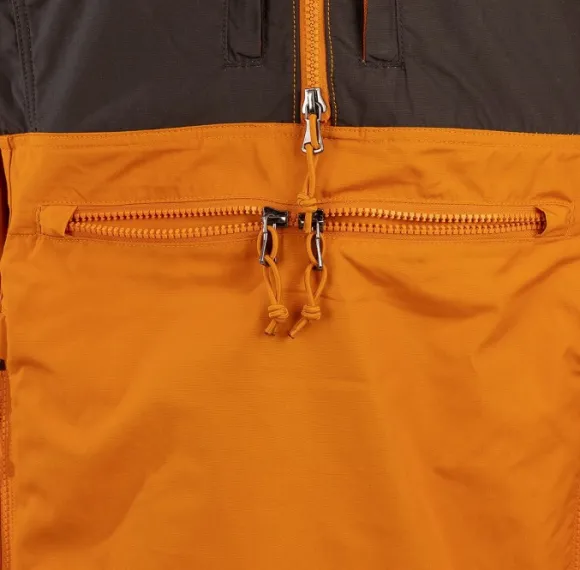 Anorakissa on useita käytännöllisiä taskuja, kuten suuri vetoketjullinen takatasku ja suuri vetoketjullinen kengurutasku. Vetoketjulliset käsi- ja hihataskut.