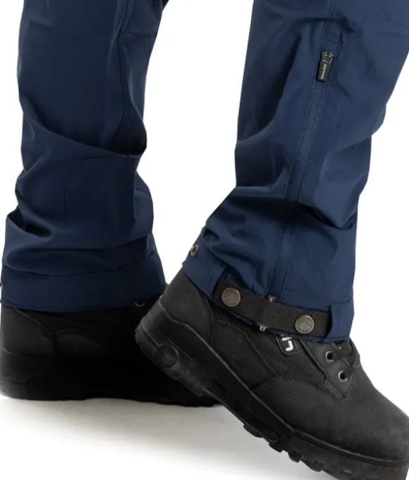 Lahkeensuut ovat säädettävät ja varustettu kengillä kiinnitettävin koukuin sekä tuuletusvetoketjuin. Vetoketjut lahkeissa helpottavat housujen pukemista ja riisumista ilman, että tarvitsee ottaa kenkiä pois.