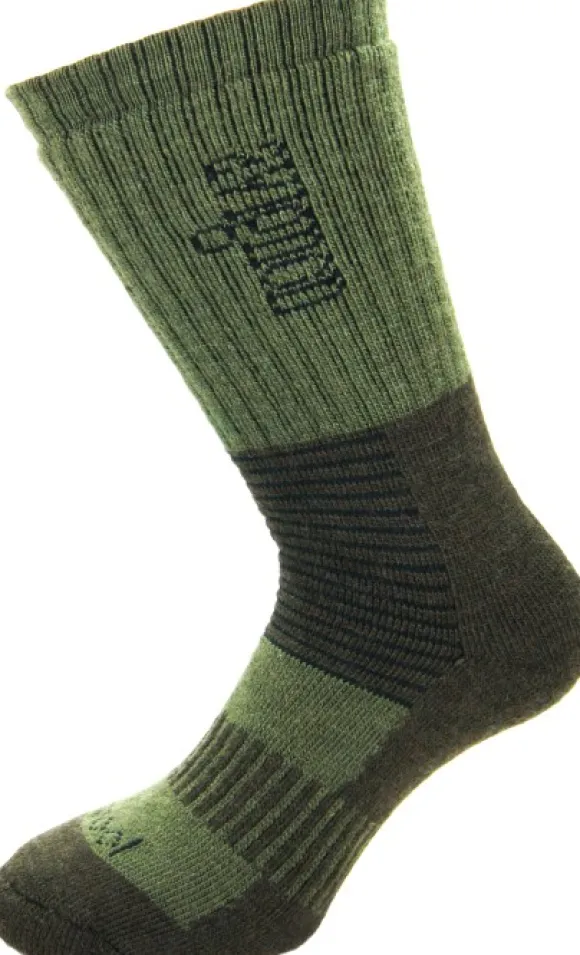 Pakkaus, joka koostuu kahdesta paksuista villasukista kahdessa eri värissä; vihreä ja harmaa. Avignon wool mid on todella lämmin sukka, joka sopii sinulle, joka palelet helposti. Sukka sopii aktiiviseen käyttöön töissä tai ulkoilussa. Sukka on neulottu 80 % hienosta ja pehmeästä merinovillasta. Merinovillalla on se fantastinen toiminto, että se säätelee luonnollisesti lämpöä. Tämä tarkoittaa, että villa lämpenee kylmällä, jäähtyy kuumalla ja lämmittää myös kosteana. Loppuosa sukasta on 12 % polyamidia ja 8 % lycraa, mikä antaa sukalle joustavuutta ja tekee siitä kestävän.
