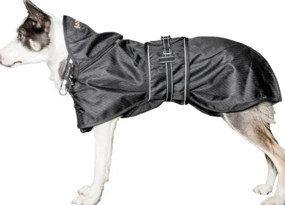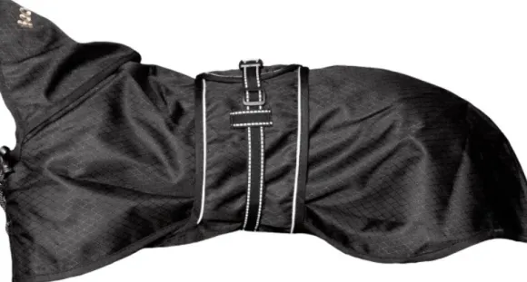 Back On Trackin ohut joka säähän sopiva koiran takki pitää koirasi kuivana säällä kuin säällä. Takin ainutlaatuinen muotoilu suojaa koiran tärkeimpiä lihasryhmiä sekä herkkää vatsan aluetta. Lämmin, heijastava Welltex®-sisävuori voi parantaa koiran verenkiertoa, mikä puolestaan pitää koiran lihakset pehmeinä ja joustavina. Mahavyössä oleva kaksoiskiinnitys estää sadevettä pääsemästä mahavyön alle. Kaulassa oleva kiristyssäätö parantaa istuvuutta, ja takana on säädettävät jalkalenkit. Kaulaosassa on aukko taluttimelle, ja etuosassa on kiristysmahdollisuus. Molemmissa kyljissä on heijastimet, jotka parantavan näkyvyyttä pimeällä.