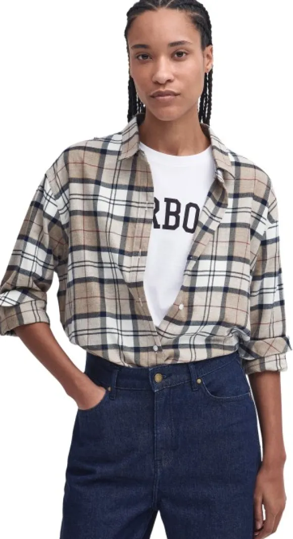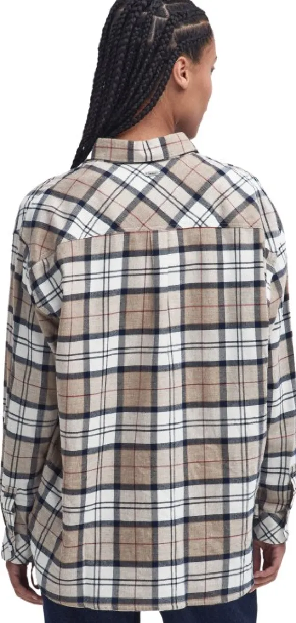 Luo rennon tyylikäs ilme Elishaw Shirt -naisten paidalla. Barbourin tarjoama pitkähihaisen paidan klassinen tartan-ruutukuvio, ylösrullattavat hihat ja käännetty kaulus tekevät siitä tyylikkään valinnan. Elishaw-paita suljetaan kierrätysmateriaalista valmistetuilla napeilla, ja se on valmistettu pehmeästä puuvillasta.
