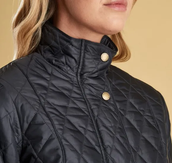 Barbour Flyweight Cavalry Quilt on tikattu takki, jossa on kaulus ja takaa säädettävä vyötärö mukavan istuvuuden takaamiseksi. Takissa on vetoketjukiinnitys, jonka lisäksi siinä on napit. Kaksi läpällä ja painonapeilla varustettua etutaskua. Toisessa taskussa on brodeerattu Barbourin logo. Tyylikäs takki sopii yhtä hyvin arkeen kuin juhlavampiinkin tilanteisiin.