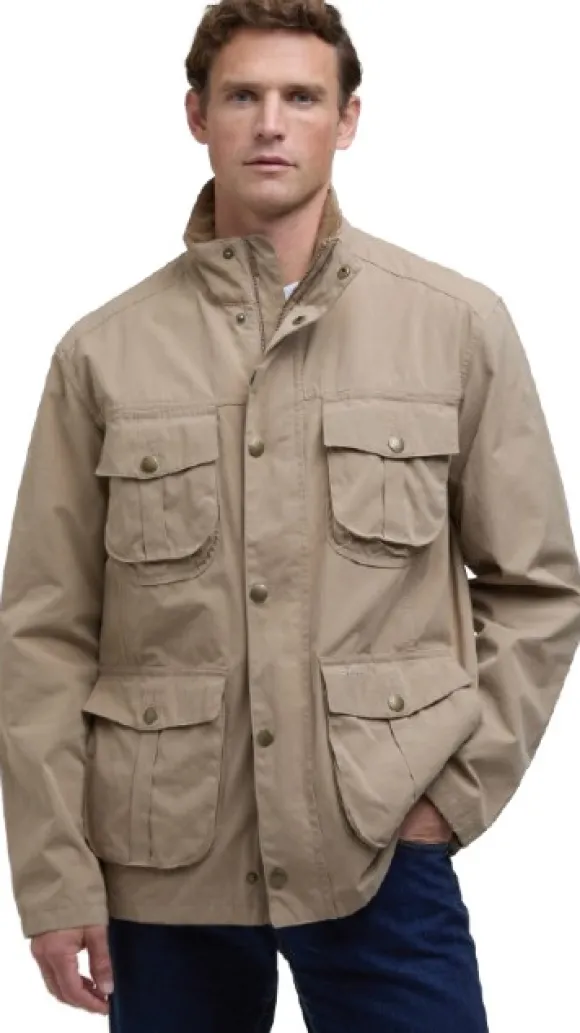 Tämä kevyt syksy- ja kevättakki sisältää useita käytännöllisiä taskuja ja ylös käännettävän kauluksen. Takissa on Barbourin klassinen kuvio yläselän vuorauksessa.