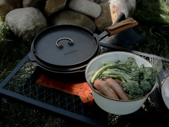 Klassinen valurautapadan kansi, pyöreä kiillotettu sisäpinta, parempi lämmönjako ja pidennetty kahva tekevät tästä pannusta unelman ruuanlaittoon – leiristä kotikeittiöön.