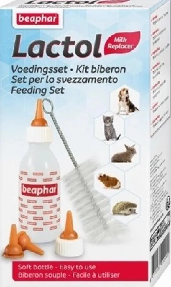 Beaphar Nursing Kit -tuttipullon avulla ruokit vastasyntyneitä pentuja/poikasia maidonkorvikkeella. Sisältää tuttipullon, varatutit ja pulloharjan.