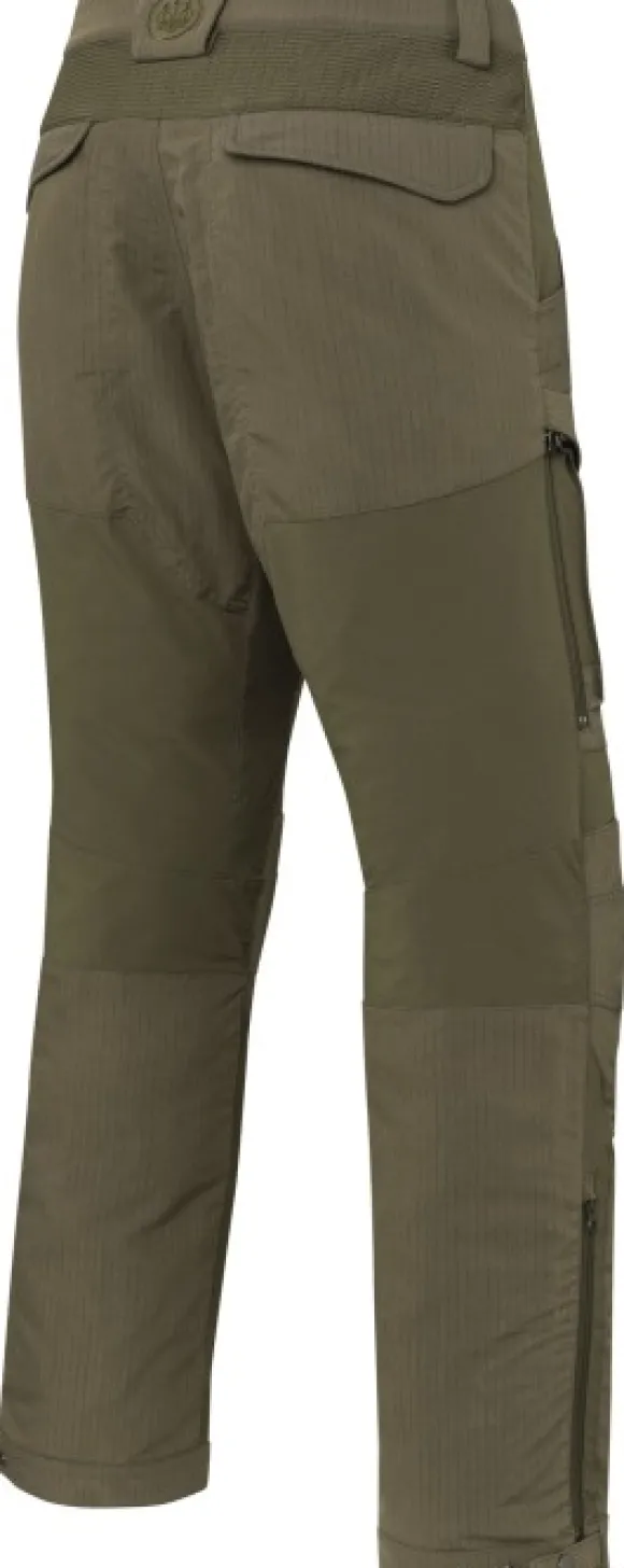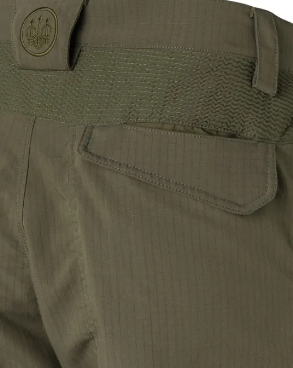 Lahkeensuut ovat säädettävissä sekä YKK-vetoketjulla että napeilla, ja nilkassa on saapaskoukku. Flanker-housuissa on myös brodeerattu Beretta-logo takana.