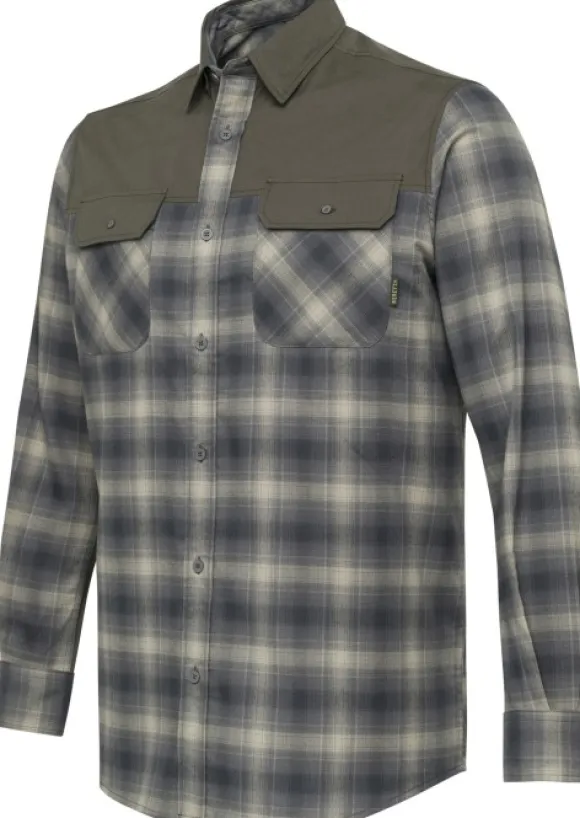 Beretta Outpost metsästyspaita miehille on normaalilla istuvuudella ja valmistettu kierrätetyn polyesterin ja elastaanin sekoituksesta. Tämä klassisen tyylikäs miesten paita on lisäksi varustettu kaksoiskangasvahvikkeilla olkapäillä, niskassa ja kyynärpäissä sekä tyylikkäällä paikkataskulla molemmissa rintataskuissa.