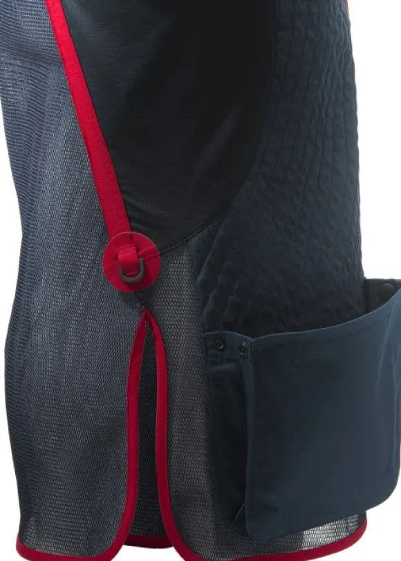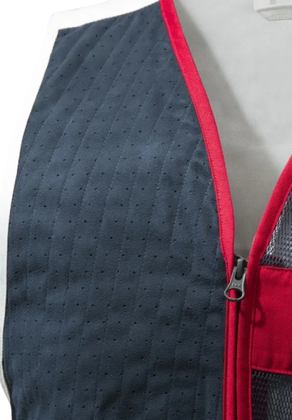 Liivi on lähes täysin hengittävä joustavasta 3D-verkosta, kun taas sen joustavasta materiaalista valmistetut sivupaneelit takaavat erinomaisen istuvuuden ja liikkumisvapauden. Etutaskut ovat laajennettavissa piilotetuilla painonapeilla ja mukavasta puuvillasta valmistettu selkäosa voidaan pukea brodeerauksella tai printeillä.