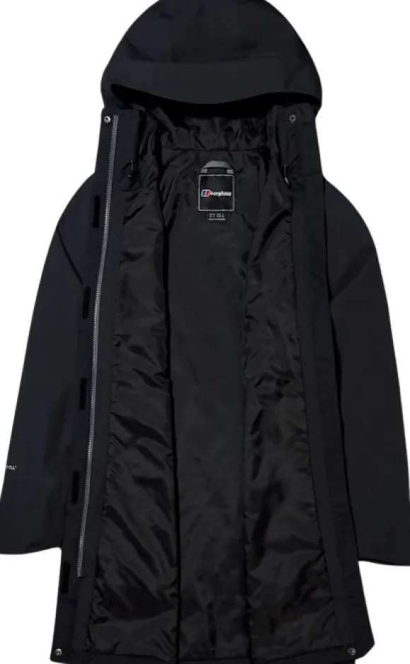Kääriydy Berghausin pitkään Omeara naisten takkiin. Se on täynnä design-yksityiskohtia, jotka tarjoavat sekä mukavuutta että tyyliä, ja sen vedenpitävä kuori pitää sinut kuivana ympäri vuoden.