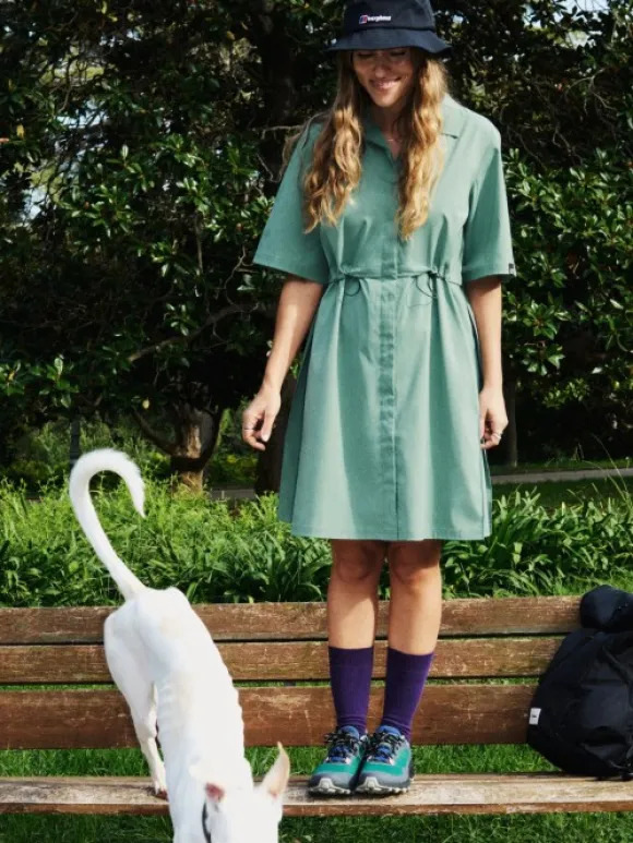 Berghausin Explorer Dress on monikäyttöinen ja toiminnallinen mekko, joka on suunniteltu aktiivisiin päiviin ulkona. Se on valmistettu kevyestä, nopeasti kuivuvasta ja joustavasta materiaalista, joka hengittää ja tarjoaa sekä mukavuutta että liikkumisvapautta lämpiminä kesäpäivinä.