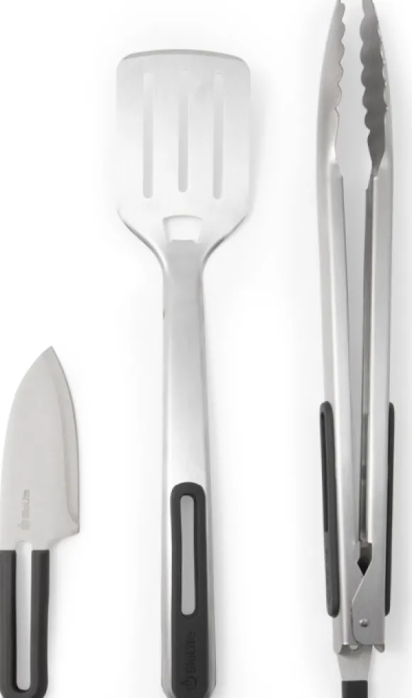Bioliten grillausvälinesettiin kuuluu veitsi, pihdit, lasta sekä kätevä, rullattava säilytyspussi. Lastassa on lisäksi integroitu purkinavaaja. Santoku-veitsellä voit helposti viipaloida, kuutioida ja silputa ainekset. Välineet on suunniteltu avotulella grillaamiseen, ja ne on valmistettu kestävästä ruostumattomasta teräksestä.