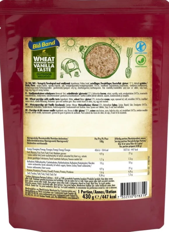 Blå Bandin vaniljainen vehnäpuuro on erinomainen aamupala retkeilyyn. Blå Band Outdoor Meal on kehitetty alun perin armeijalle ja heidän kenttätarpeisiinsa, mutta korkean ravintoarvon ja hyvän makunsa ansiosta Blå Bandin retkiruoat soveltuvat hyvin aktiivisille ulkoilmaihmisille. Ruoka on kätevästi ja helposti käytettävässä pakkausmuodossa.