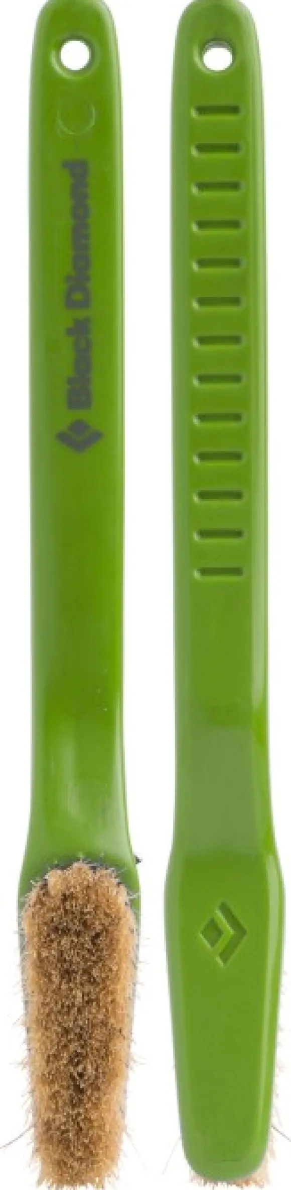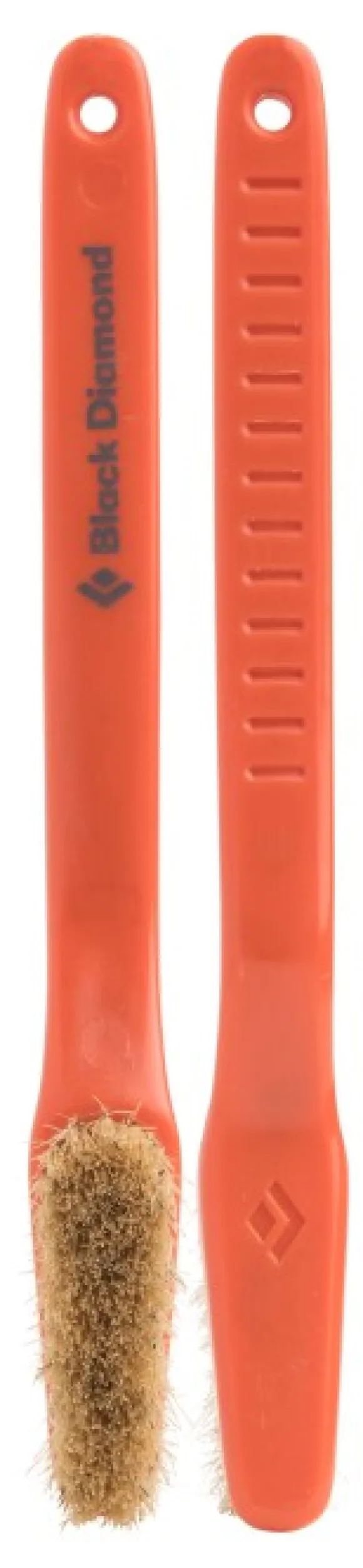 Black Diamondin oteharja kiipeilyyn. Harjassa on ergonominen kahva, joten rystyset eivät kolahda seinään. Kavennetun pään ansiosta harjalla pääsee myös nurkkiin ja muihin ahtaisiin koloihin. Harjakset on valmistettu villisian karvoista, mikä tekee harjasta kestävän ja lujan työvälineen liidun ja lian puhdistamiseen. Harja sopii hyvin Mondo-mankkapussin harjapidikkeeseen. Saatavana neljää eri väriä.
