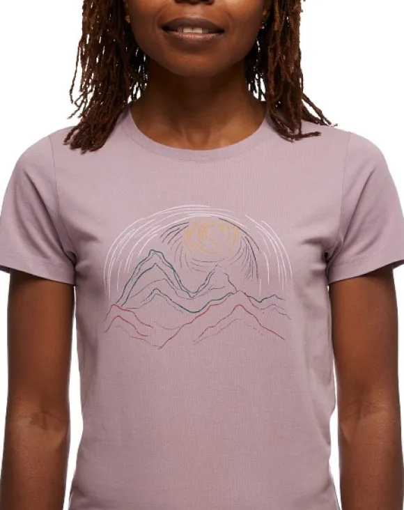 Black Diamondin Summit Scribble on naisten t-paita, joka on valmistettu pehmeästä, joustavasta ja ekologisesta puuvillakankaasta. Paitaan on painettu kaunis vuoristomaisema.