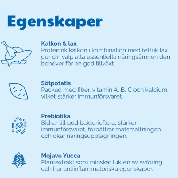 - Proteiinirikas kalkkuna yhdessä rasvaisen lohen kanssa antaa pennullesi kaikki välttämättömät ravintoaineet, joita se tarvitsee kasvua varten
