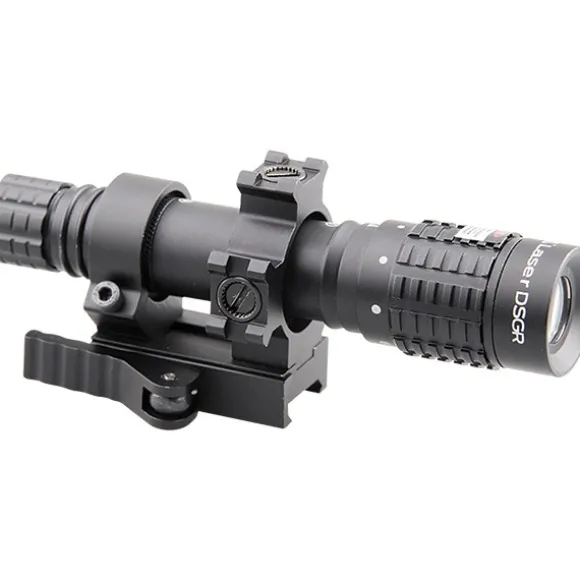 DSGR-laservalaisin kiinnitetään joko kiikaritähtäimeen (runkoputken paksuus 25,4 tai 30 mm) tai aseen Picatinny/weaver-kiskoon mukana toimitettavilla adaptereilla. Mukana myös etäkytkin, jolla valaisinta voi hallita irrottamatta otetta aseesta.