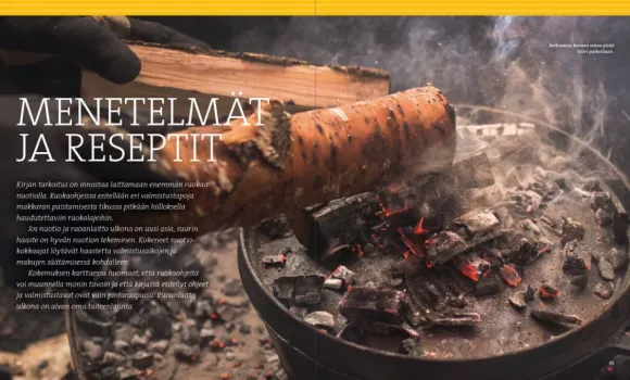 Kirjan lopusta löydät reseptikokoelman, jossa riittää ohjeita porokeitosta kokonaisen kanan kypsentämiseen hiilloksen lämmössä. Vain oma makusi ja mielikuvituksesi voivat asettaa rajoja kokkailulle ja herkuttelulle. Oletko jo kokeillut paistaa pullia hiilloksella tai pizzaa kuumalla kivellä?
